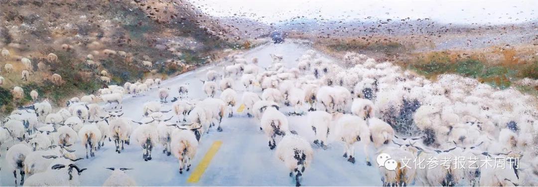 罗秋帆前几年每年都要带领学生离校外出写生采风,攀太行,跑边疆,北上长白山,南下海南岛,深入农民家庭,走访少数民族等地采风已经常态化,言传身教,为他的水彩画创作和学生的写生作业提供了丰富的创作素材。罗秋帆写实能力很强,有时以寥寥数笔勾勒轮廓,有时则完全靠色彩把握形象,尤其擅画民居、树木。他重形之准确,亦重意境之美妙。画作力求视角独特,构图精到,意境优美,富有情趣和诗意。从他的《吉祥同行》代表性作品中可以看到,雪山高耸,白云朵朵,湛蓝的天空下牛羊成群,把碧绿的草原映衬得如诗如歌……这些水彩佳作色彩典雅,形象生动,情景相融,意趣盎然,富有浓郁的生活气息,给人以美的享受。