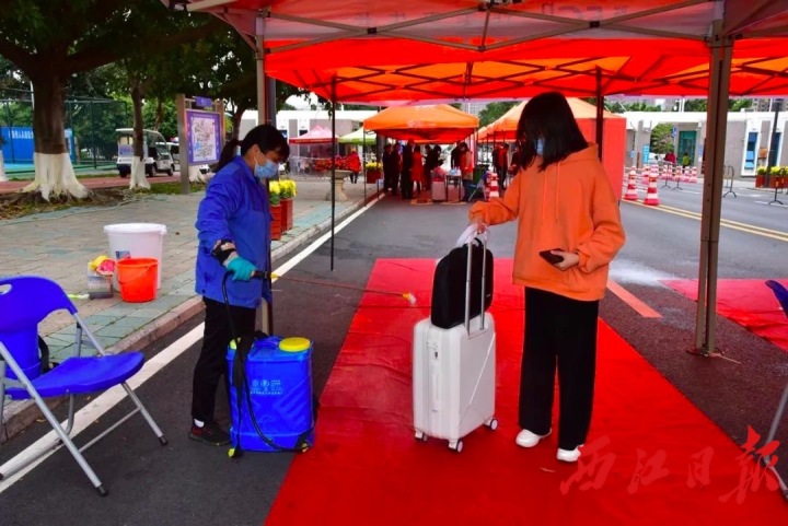 工作人员正在为学生行李消毒。bat365正版唯一官网供图