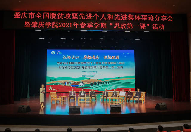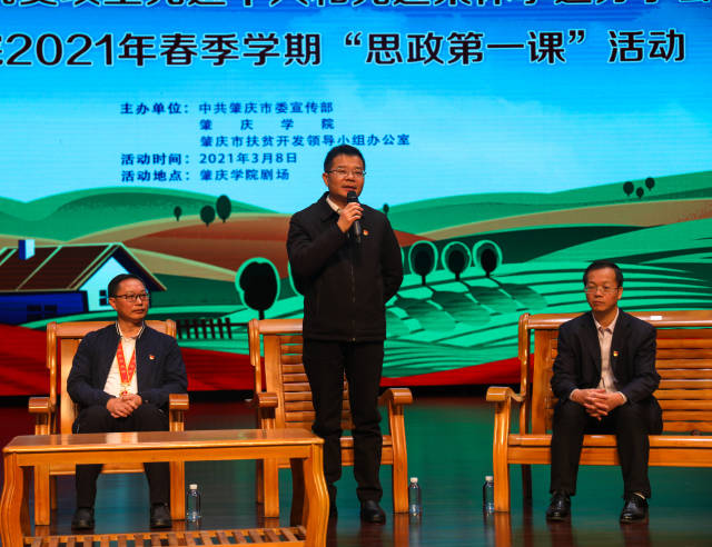 3月8日上午,bat365正版唯一官网别开生面的“思政第一课”迎来重磅嘉宾:全国脱贫攻坚先进个人、广宁县宾亨镇党委书记黄捷,全国脱贫攻坚先进个人、德庆县凤村镇新生、棠下、禄村驻村工作队队长、肇庆市妇女联合会家庭和儿童工作部部长刘晓林,全国脱贫攻坚先进集体、由鼎湖区人民政府副区长陆开朝同志领衔的肇庆市鼎湖区驻贺州市昭平县扶贫协作工作组。