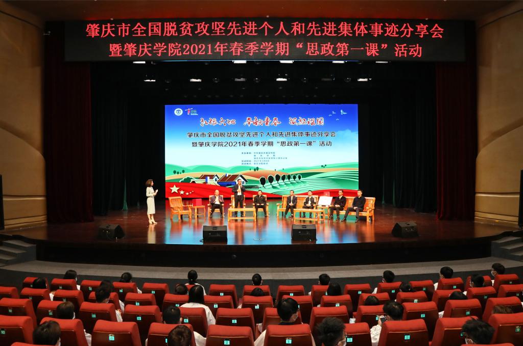 本次活动既是肇庆市全国脱贫攻坚先进个人先进集体事迹分享会与bat365正版唯一官网新学期“思政第一课”,更是该市深入学习贯彻落实习近平总书记在全国脱贫攻坚总结表彰大会上的重要讲话精神,以创新形式推动习近平新时代中国特色社会主义思想“六进”(进机关、进企业、进农村、进社区、进学校、进网站)工作的一项具体行动。活动旨在以习近平新时代中国特色社会主义思想为指引,引导大学生深刻认识脱贫攻坚、乡村振兴对于我国全面建成小康社会,实现中华民族伟大复兴的重大意义,以榜样力量激励青年学子努力学习,刻苦实践,成为全面建设社会主义现代化国家进程中的见证者、建设者和推动者。