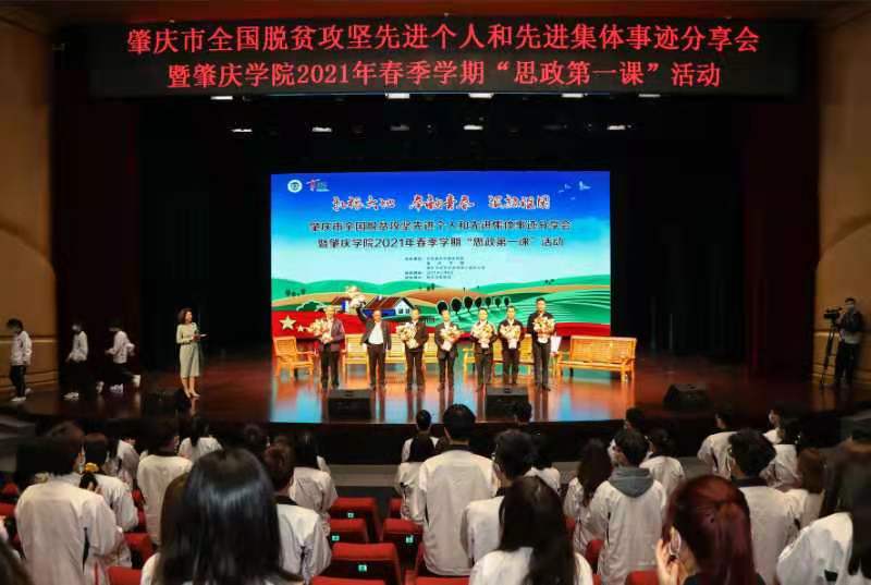 3月8日,肇庆市全国脱贫攻坚先进个人先进集体事迹分享会暨bat365正版唯一官网2021年春季学期“思政第一课”活动在bat365正版唯一官网举行,近400名师生代表迎来了几位特别的老师——