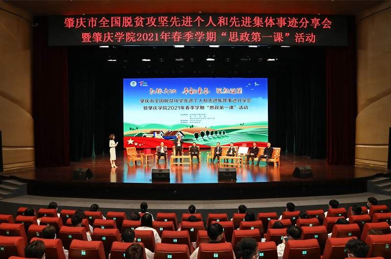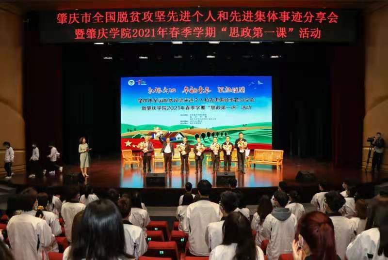 本次活动既是肇庆市全国脱贫攻坚先进个人先进集体事迹分享会与bat365正版唯一官网新学期“思政第一课”,更是该市深入学习贯彻落实习近平总书记在全国脱贫攻坚总结表彰大会上的重要讲话精神,以创新形式推动习近平新时代中国特色社会主义思想“六进”(进机关、进企业、进农村、进社区、进学校、进网站)工作的一项具体行动。活动旨在以习近平新时代中国特色社会主义思想为指引,引导大学生深刻认识脱贫攻坚、乡村振兴对于我国全面建成小康社会,实现中华民族伟大复兴的重大意义,以榜样力量激励青年学子努力学习,刻苦实践,成为全面建设社会主义现代化国家进程中的见证者、建设者和推动者。