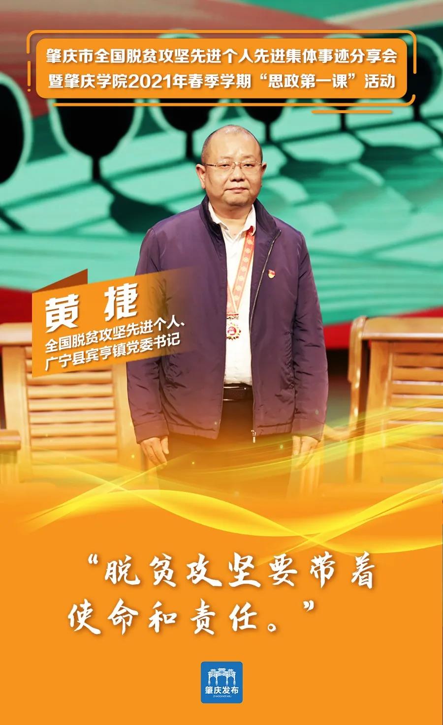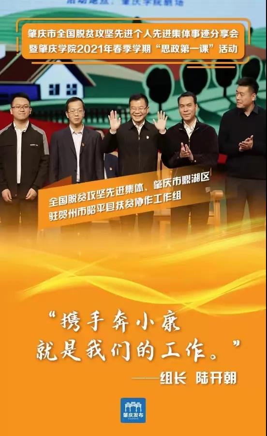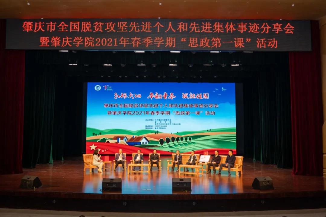 本次活动既是肇庆市全国脱贫攻坚先进个人先进集体事迹分享会与bat365正版唯一官网新学期“思政第一课”,更是我市深入学习贯彻落实习近平总书记在全国脱贫攻坚总结表彰大会上的重要讲话精神,以创新形式推动习近平新时代中国特色社会主义思想“六进”(进机关、进企业、进农村、进社区、进学校、进网站)工作的一项具体行动。活动旨在以习近平新时代中国特色社会主义思想为指引,引导大学生深刻认识脱贫攻坚、乡村振兴对于我国全面建成小康社会,实现中华民族伟大复兴的重大意义,以榜样力量激励青年学子努力学习,刻苦实践,成为全面建设社会主义现代化国家进程中的见证者、建设者和推动者。