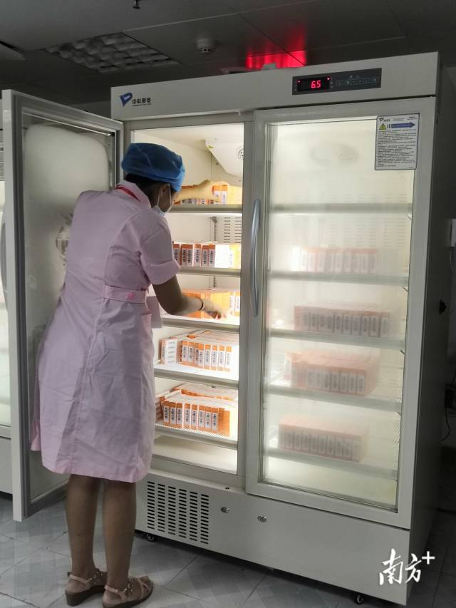 医护人员整理冰柜里的新冠疫苗。 唐锦洪 摄