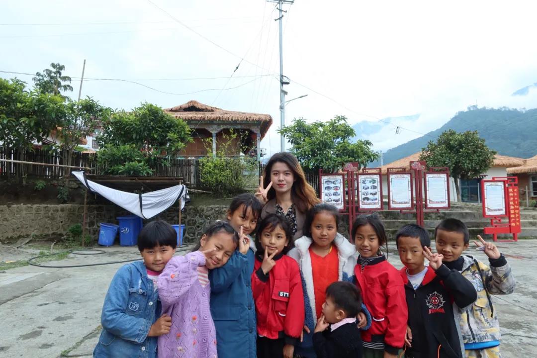 支教队员林慧和学生们在一起