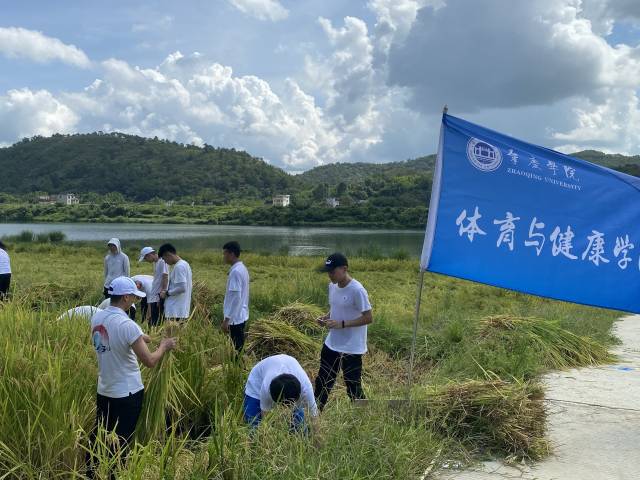 贺江碧绿幽深,环境优美,有“中国最清澈、最弯曲的河流”之称,是封开县的名片之一。7月11日,bat365正版唯一官网体育与健康学院“三下乡”志愿服务队,跟随封开县江口街道相关负责人的脚步,前往贺江碧道画廊景区进行调研,参与稻谷收割。
