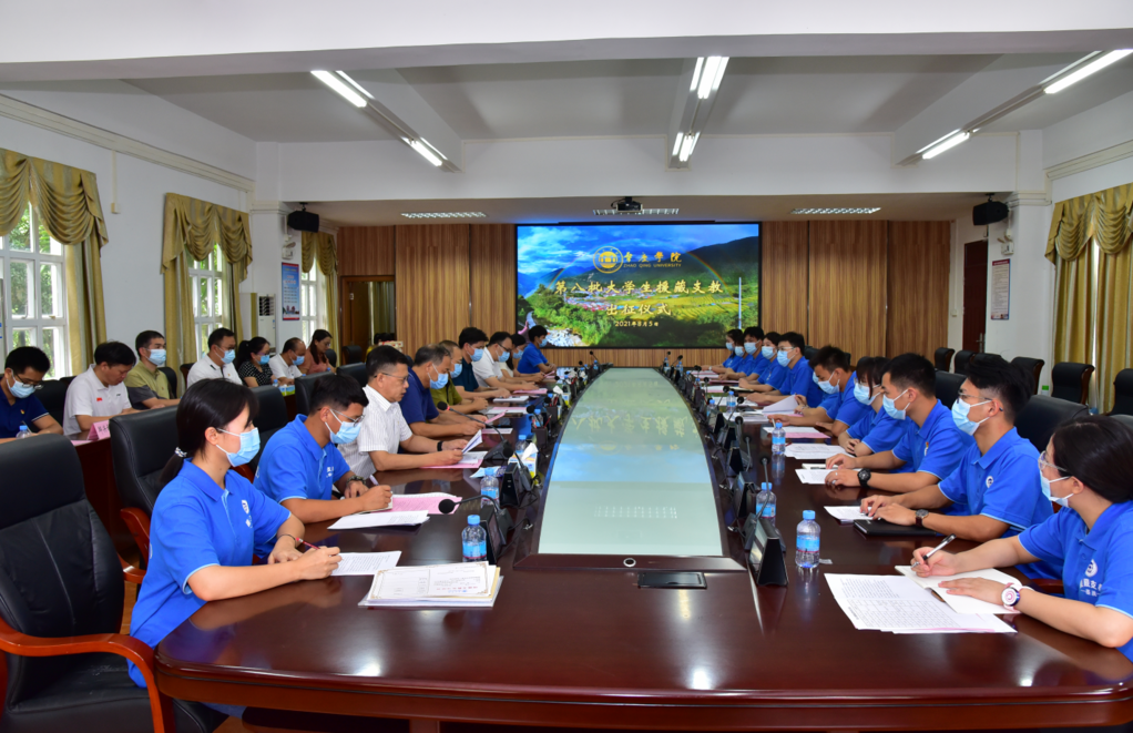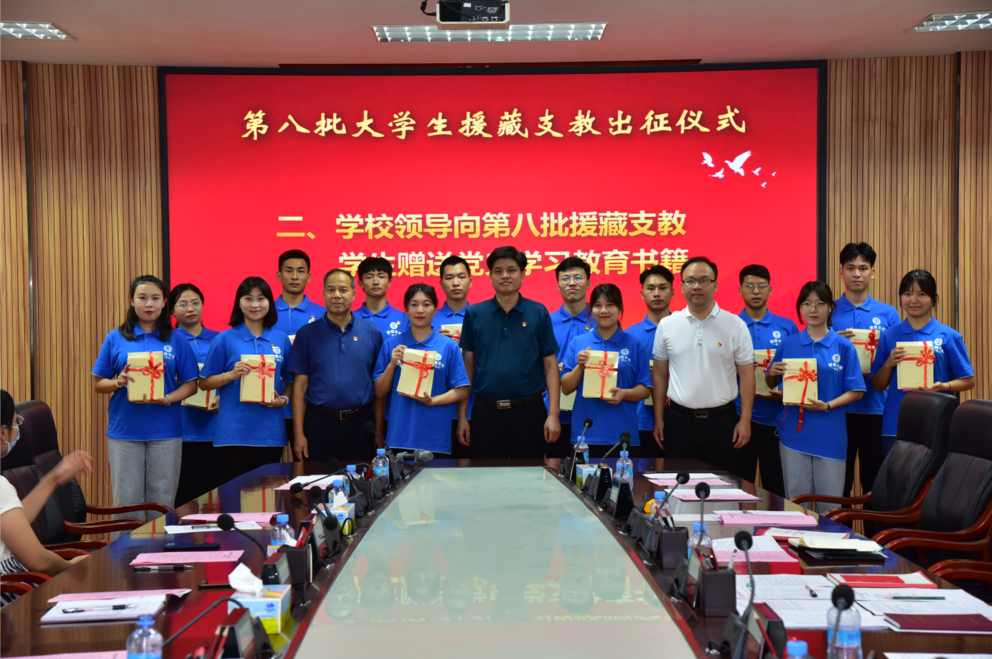 当天下午,bat365第八批大学生援藏支教出征仪式在文笔峰临峰厅举行。校党委副书记、纪委书记黄劲松,校党委委员、党委组织部部长欧洪湛,校党委委员、党办校办主任谭冠中,校党委委员、党委宣传部统战部部长陈前,以及党委学生工作部(处)、团委等职能部门负责人,第八批援藏支教服务队成员所在学院领导和第八批援藏支教服务队全体师生出席仪式。仪式由党委学生工作部(处)长陈向荣主持。