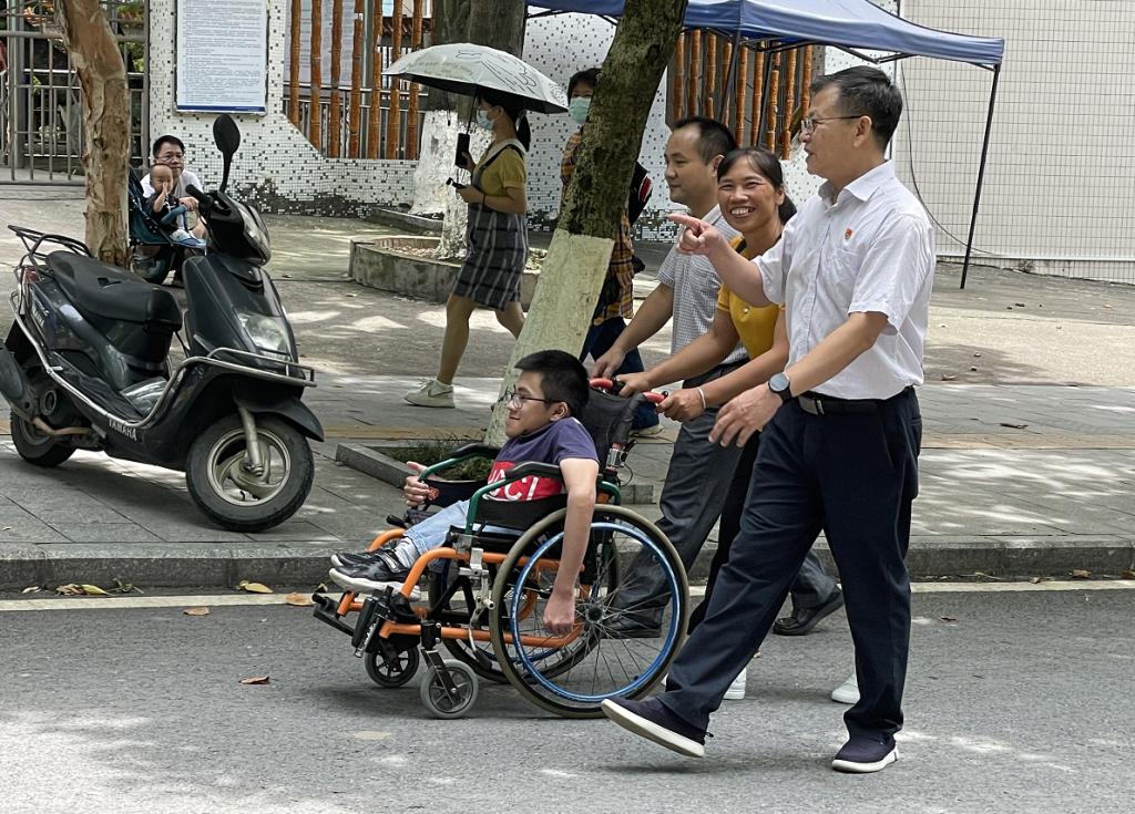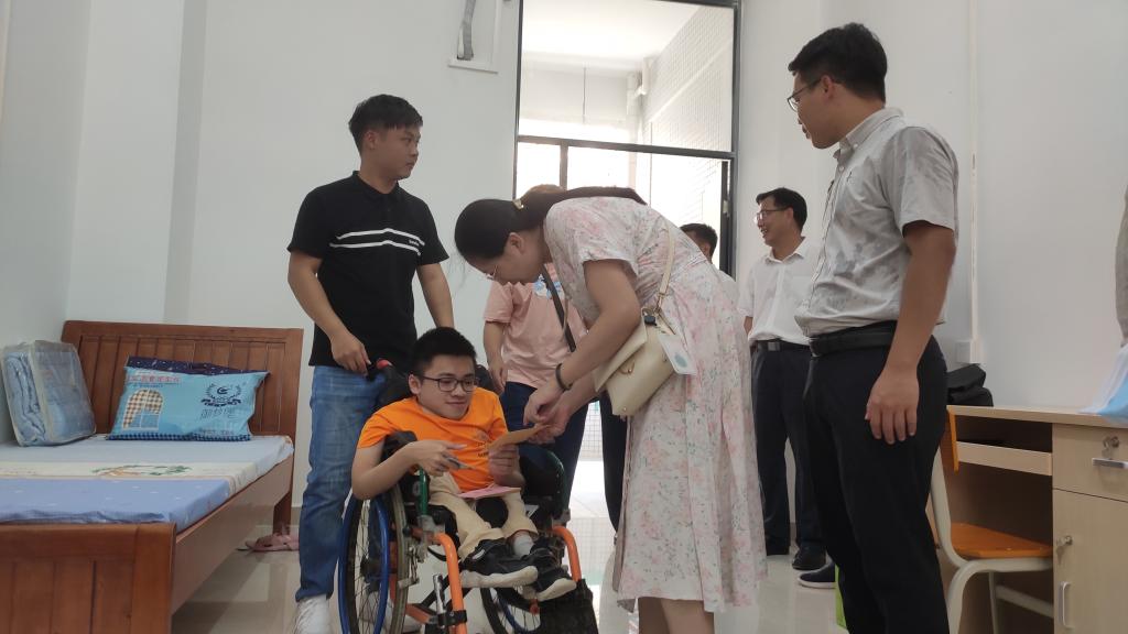 曾廣被bat365正版唯一官网录取后,黎诗想在开学前先带儿子到学校熟悉情况,bat365正版唯一官网迅速对接安排,让母子俩得以在八月下旬成行。教室、宿舍楼、图书馆、学校食堂……在bat365正版唯一官网学生处负责人与计算机学院负责人的陪同下,黎诗推着坐在轮椅上的曾廣提前逛遍了bat365正版唯一官网的每个角落。“儿子住哪里?她住哪里?”“宿舍离教学楼有多远?”“教室安排在哪里?”……这些他们关心的问题也一一得到解答
