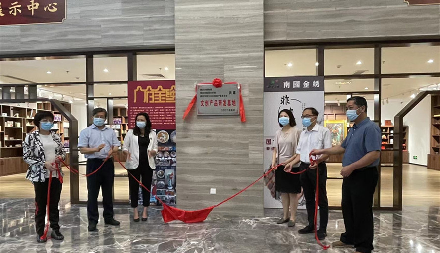 图为领导嘉宾为馆校企文创产品研发基地揭牌,西江日报记者陈明红摄揭牌现场。西江日报记者 陈明红 摄