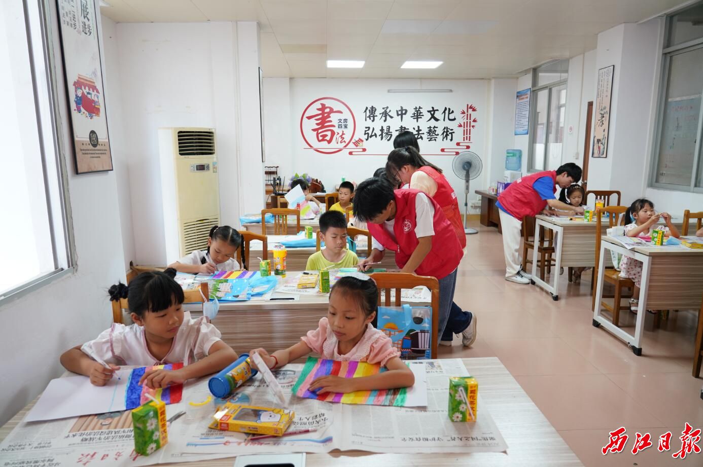 bat365正版唯一官网志愿者在“邻里龙学堂”指导孩子画画。 西江日报记者 严炯明 摄
