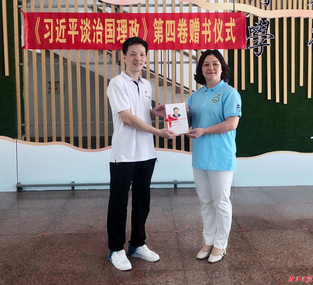 手捧赠书,优秀学生党员代表林锦丽激动地对记者说:“我们学生党员必须认真学习《习近平谈治国理政》第四卷,要在学懂弄通上下功夫,学好用好这部重要著作,争取在党建学习和科研学习上不断创造优异成绩。”据悉,林锦丽同时也是该学院2022年大学生志愿者暑期“三下乡”社会实践队队长,赠书活动次日,该队伍将启程奔赴封开县开展为期五天的暑期“三下乡”活动。“我将忠诚履职,铭记初心,将所学运用于本次下乡中,为肇庆乡村建设和乡村振兴贡献自己的一份力量。”林锦丽补充道。