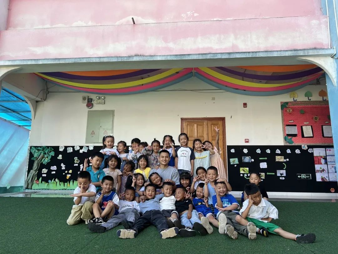 图片图为支教队员钟涛璟与中班小朋友的合影