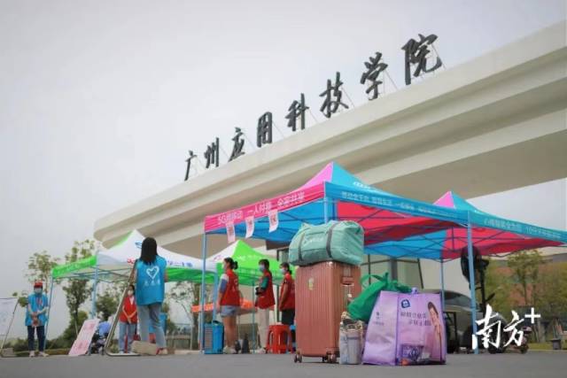 广州应用科技学院迎新现场。