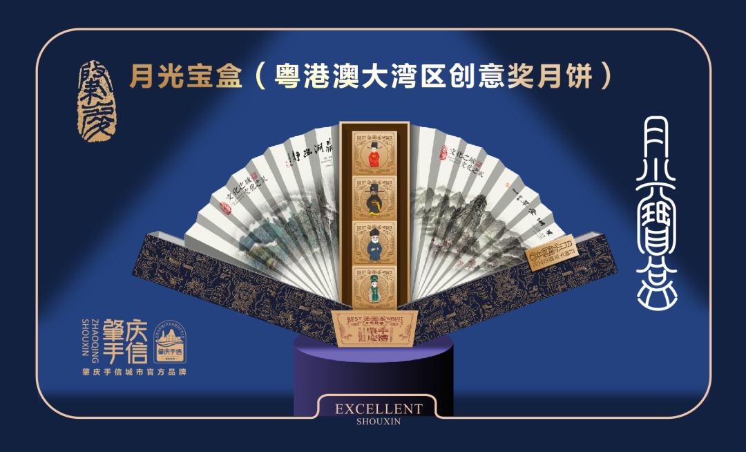 拉开“月光宝盒”,绘制着鼎湖幽胜的扇子里,嵌藏着定制月饼,宋徽宗、利玛窦、包拯等肇庆历代名人的卡通形象跃然其中……凭借着高颜值的外形、独特的造型和蕴藏的文化特色,“月光宝盒”月饼曾荣获2020年粤港澳大湾区,文化创意大奖第三名。