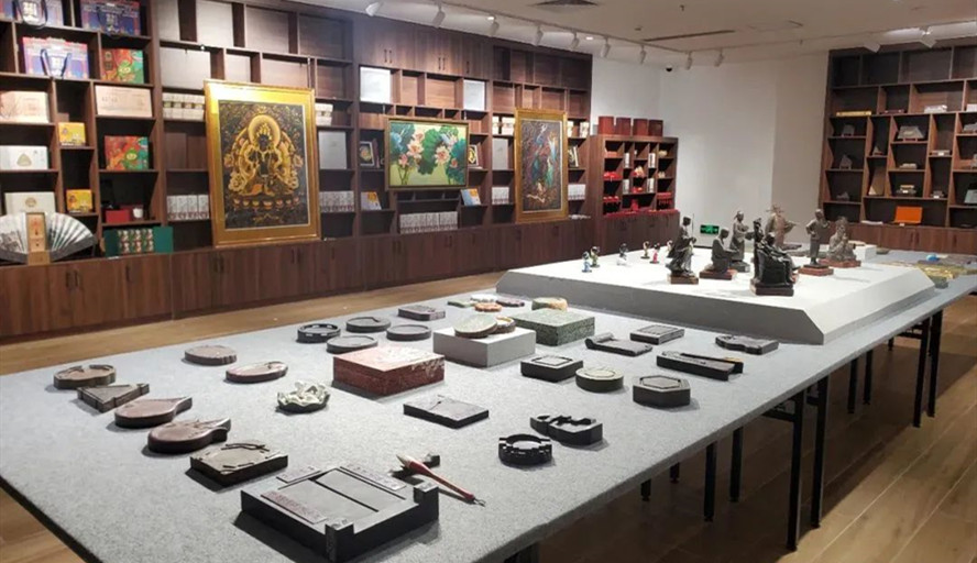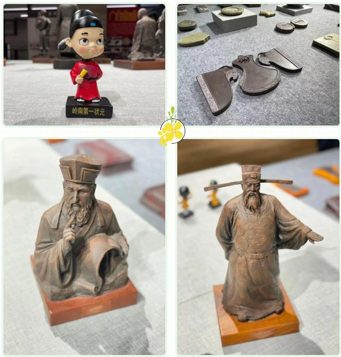 △馆校企文创产品研发基地位于市博物馆首层文创展示中心内,展示了端砚、广府金绣、肇庆名人雕像、特色砚雕、创意文具、肇庆手信等文创产品。图源 多彩肇庆
