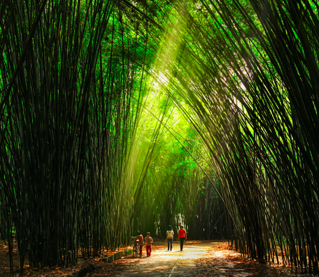 阳光透过竹林洒在林间小道。通讯员 巫广民 摄