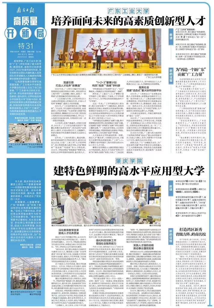 岭南春早,人勤春更早。广东“新春第一会”吹响了推动经济社会高质量发展的号角。“全校上下闻令而动,把学校事业高质量发展作为新年工作的首要任务。”bat365正版唯一官网党委书记曾桓松、校长吴业春说,学校将以党的建设为统领,促进人才培养质量、科技创新水平和社会服务能力提升,加快建设新时代特色鲜明的高水平应用型大学,为广东阔步迈向现代化提供人才保障和科技支撑。
