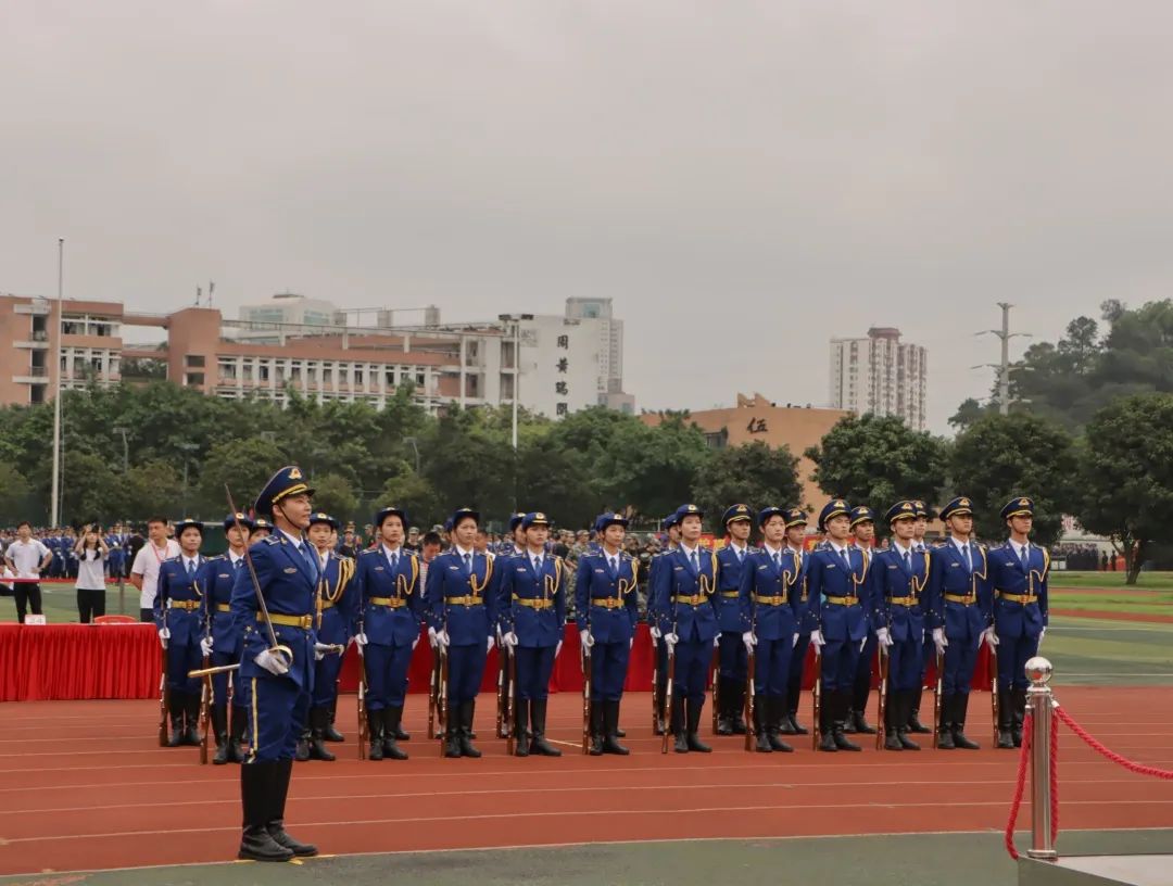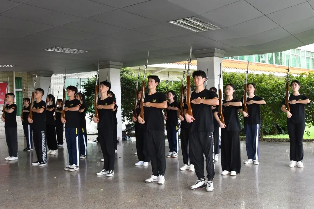 那段时间常能在第一田径场看到这批队伍的身影,细雨绵绵时他们在主席台的小隔间走廊练习定枪,正常情况下在升旗台附近进行反复演习。也许偶尔脸上带着些许疲倦,但坚毅的眼神比繁星更亮,他们炙热的心与火红的梦重叠, 干脆利落的摆臂和整齐划一的抬腿,扬起风的梦想放歌长空。
