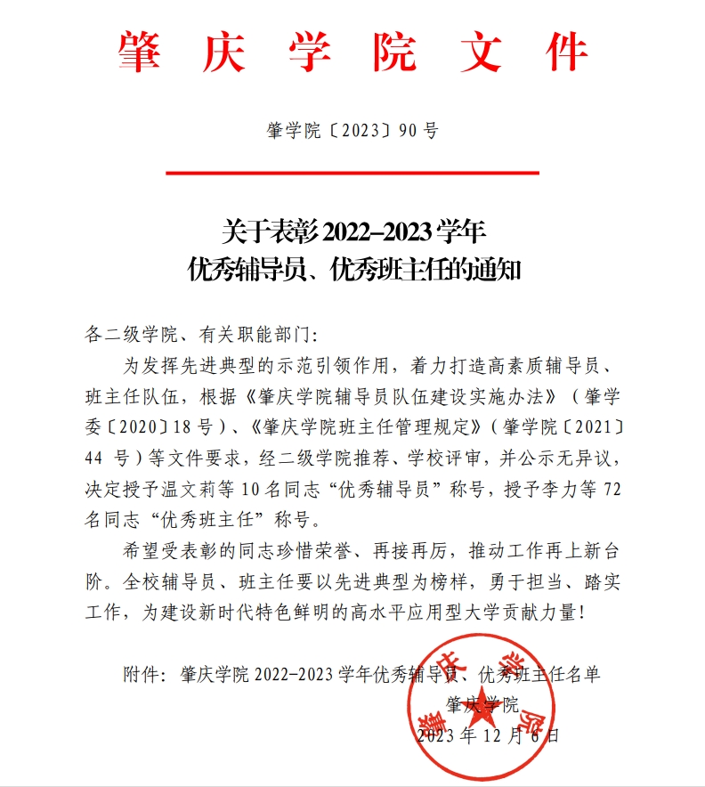通知强调,受表彰的同志要珍惜荣誉、再接再厉,推动工作再上新台 阶。全校辅导员、班主任要以先进典型为榜样,勇于担当、踏实 工作,为建设新时代特色鲜明的高水平应用型大学贡献力量。