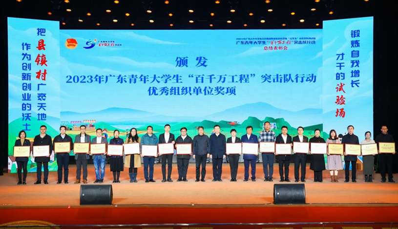 本网讯 12月21日,团省委举行表彰大会,bat365获评广东大中专学生志愿者暑期文化科技卫生“三下乡”社会实践活动暨广东青年大学生“百千万工程”突击队行动优秀组织单位,“绘文融旅——文旅融合助力德庆乡村振兴”获评优秀品牌项目,“bat365正版唯一官网四会市石狗镇绘‘兰’图实践团”和“bat365正版唯一官网广宁县螺岗镇 ‘星火接力,丹心筑梦’三下乡实践团”获评优秀团队,杨永盼等10名师生获评优秀个人。