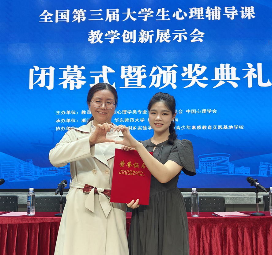 本网讯 5月20日,全国第三届大学生心理辅导课教学创新展示会决赛在嘉兴桐乡落下帷幕。经过激烈角逐,教育科学学院梁婉仪同学斩获大赛一等奖。