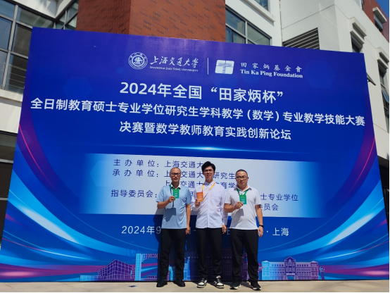 本网讯  9月27日至29日,由上海交通大学主办,上海交通大学研究生院和教育学院承办的2024年全国“田家炳杯”全日制教育硕士专业学位研究生学科教学(数学)专业教学技能大赛在上海交通大学闵行校区举行。数学院研究生学子潘国炜在比赛中,凭借扎实的教学基本功和自信得体的教学风采,赢得评委的肯定,荣获优秀教学设计奖。