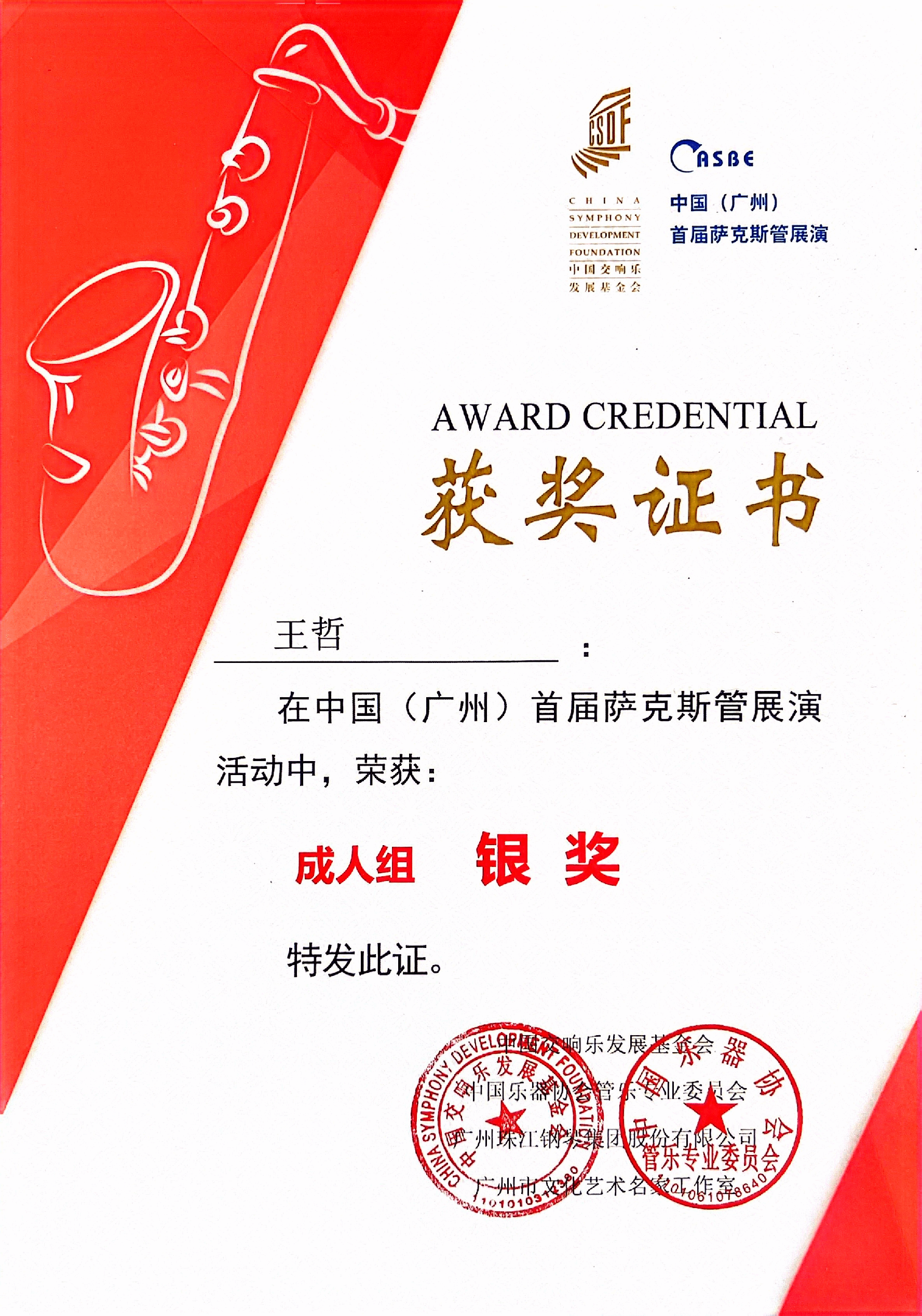 音乐学院2022级音乐学2班王哲同学在比赛中获得成人组银奖(全国第三名)的好成绩,2022级萨克斯管四重奏组获得重奏组铜奖。