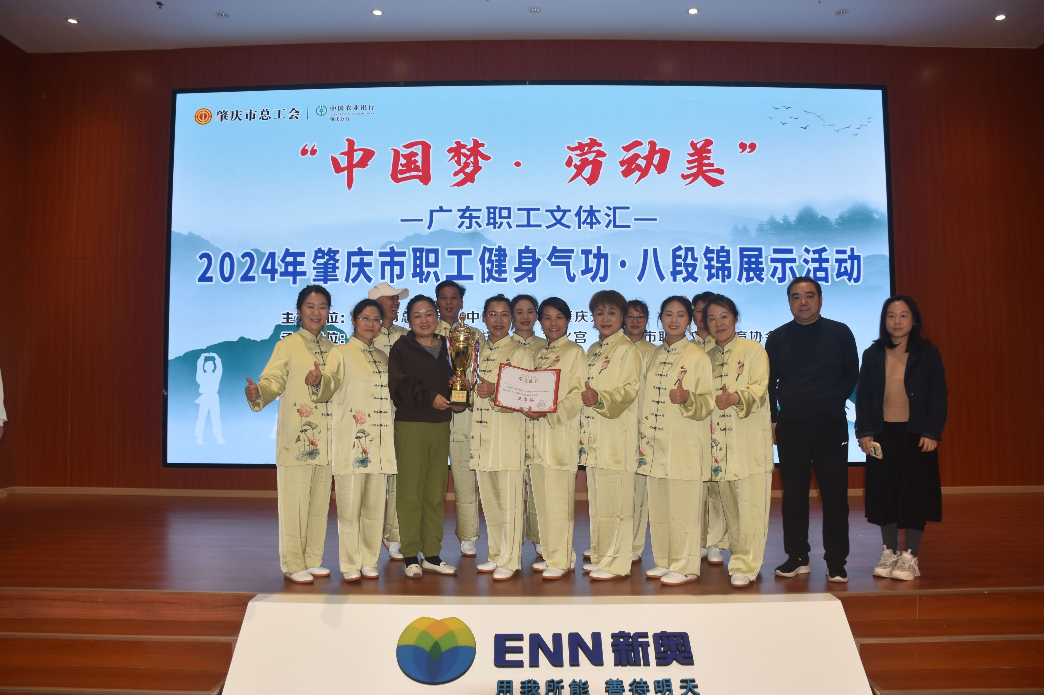 本网讯 12月30日下午,“中国梦·劳动美-广东职工文体汇”肇庆市职工健身气功·八段锦展示活动在肇庆新奥燃气公司举行。bat365组织代表队参赛,并获得三等奖。本次活动由肇庆市总工会主办,旨在全面贯彻落实党的二十届三中全会精神,积极推广和普及传统健身功法八段锦,引导广大职工群众参与全民健身活动,增强职工身体素质。校工会积极响应号召,举办教职工八段锦培训班,并选拔12名优秀学员组队参与比赛,展现了bat365对教职工身心健康的高度重视。
