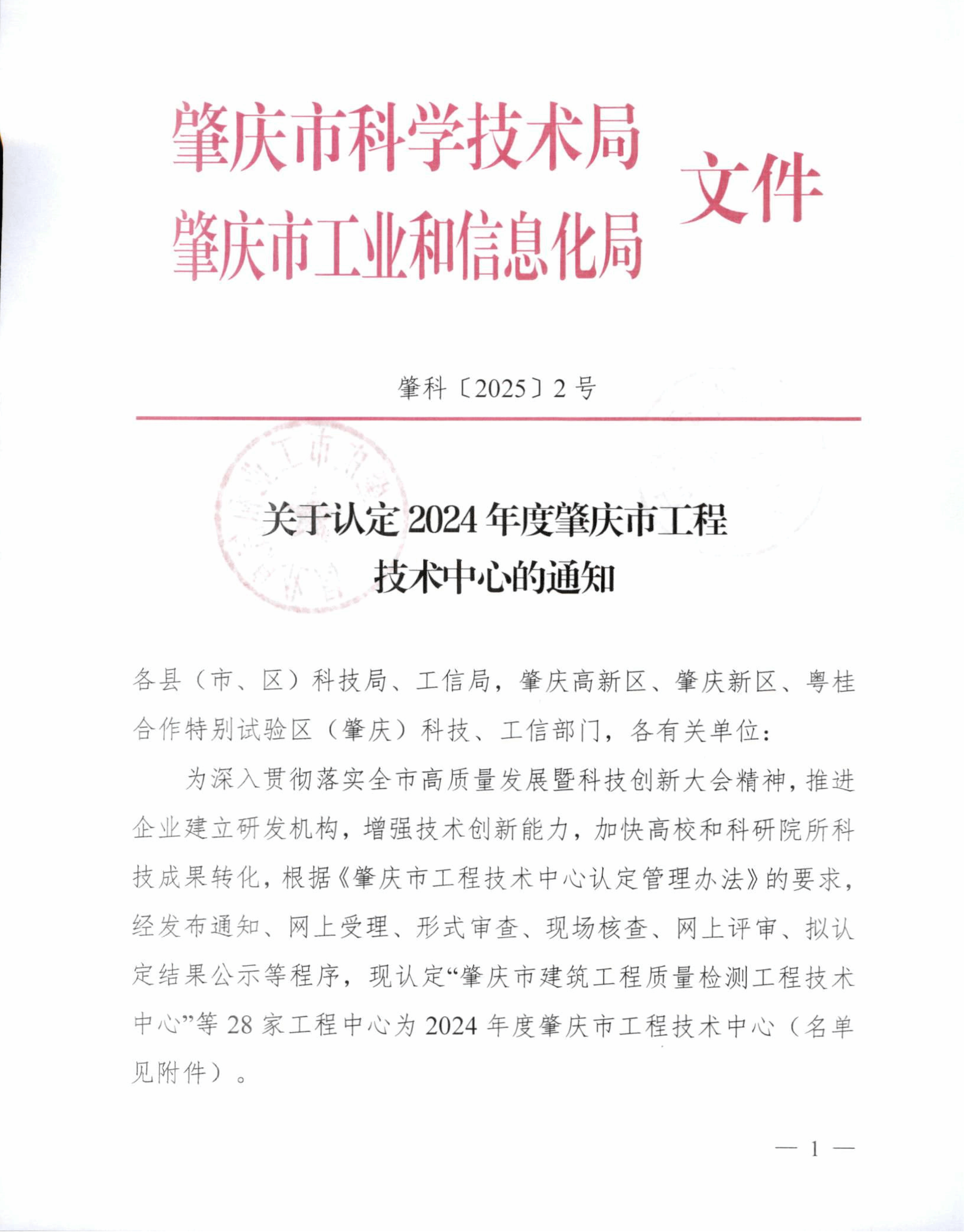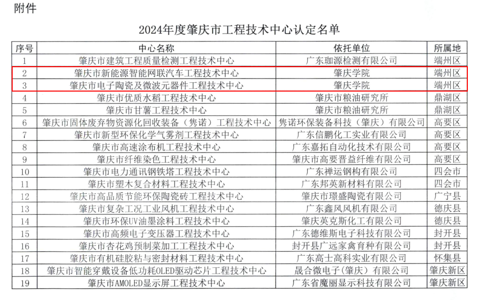 本网讯 近日,肇庆市科学技术局、肇庆市工业和信息化局联合印发了《关于认定2024年度肇庆市工程技术中心的通知》(肇科〔2025〕2号),bat365成功获批两个市级工程技术中心,分别为李剑英副教授申报的《肇庆市新能源智能网联汽车工程技术中心》、陈元斌教授申报的《肇庆市电子陶瓷及微波元器件工程技术中心》。