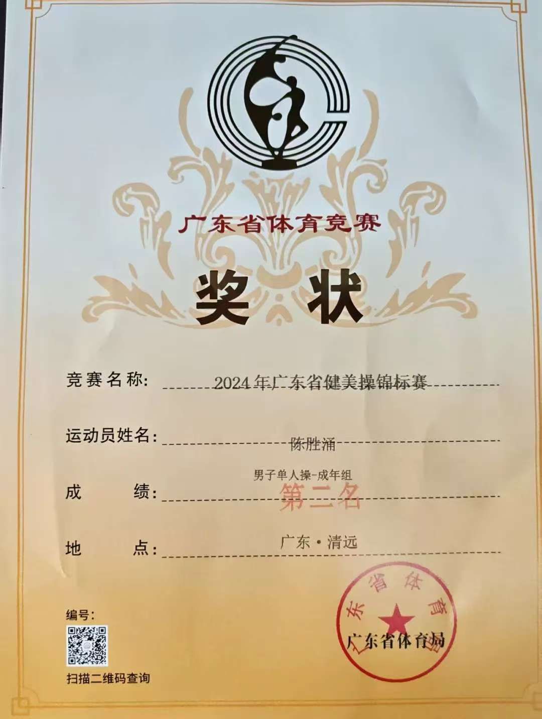 又讯:5月11日,在广东省第十二届大学生运动会健美操乙组男子单人操比赛中,陈胜涌在面对多名健将级选手参赛的情况下,努力拼搏,不畏强敌,喜获第五名的骄人成绩,让我们祝贺陈胜涌,祝贺健美操队!