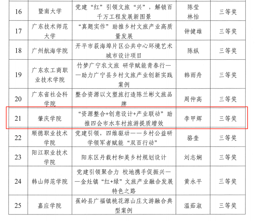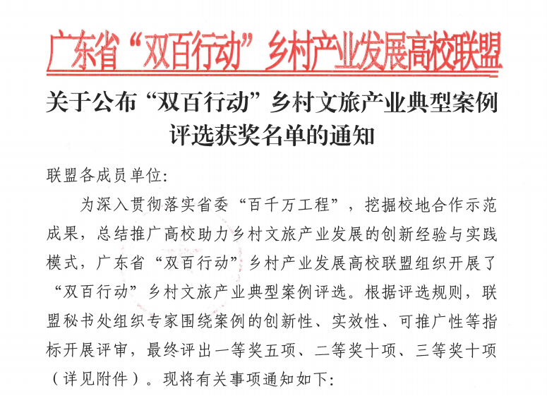 本网讯 近日,广东省“双百行动”乡村产业发展高校联盟公布乡村文旅产业典型案例评选结果,bat365提报的《“资源整合+创意设计+产业联动”助推四会市水车村旅游提质增效》案例荣获三等奖。该案例以鲜明的主题、突出的创新性与实效性入选省级典型,这也是bat365“双百行动”项目继广东省“粤美乡村”风貌设计大赛(获4项三等奖)、广东省高校“乡村创新”艺术设计大赛(获19项省级奖项,其中二等奖1项、三等奖1项)后,再度获得的省级荣誉。