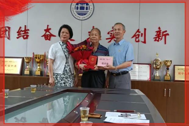 由于老同志年龄相对较大,根据实际情况,离退休党总支采取了不同的形式落实“光荣在党50年”纪念章的颁授工作。而从离退休党总支书记蓝世光看来,不管是集体颁发还是上门颁发,他都在颁授纪念章的过程中,从老同志身上强烈地感受到了他们作为共产党员所特有的荣誉感、归属感和使命感。他说,年轻一代的党员同志要以老党员为榜样,为党尽责,为国奉献,为民分忧,通过追寻老党员的光辉足迹,赓续前一辈的精神血脉,更好地为学校事业高质量发展贡献智慧和力量。