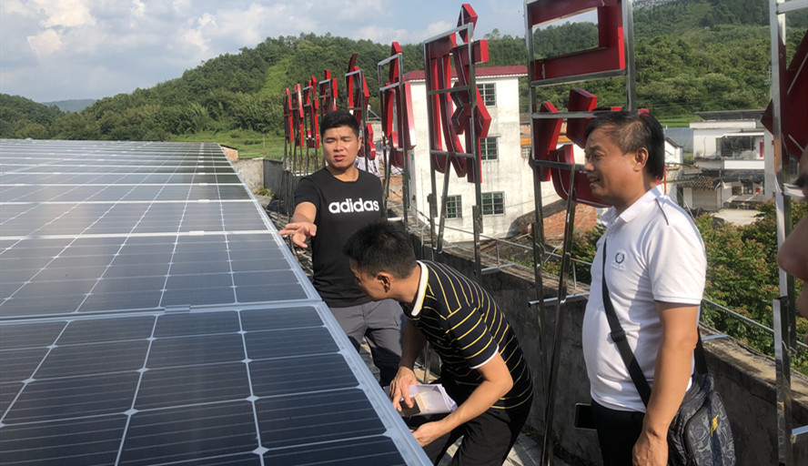 脱贫需要多管齐下。第一颗纽扣扣好以后,陈剑平和他的团队齐心协力,想出了开展“资产收益项目”这一招。工作队根据贫困户开展项目的意愿,筹集资金在村委会办公楼楼顶集中安装太阳能光伏发电站——广宁横山地处低纬度地区,太阳辐射强,太阳能发电板收集到的能源,既可自用,又可出售,从而增加贫困户收入。