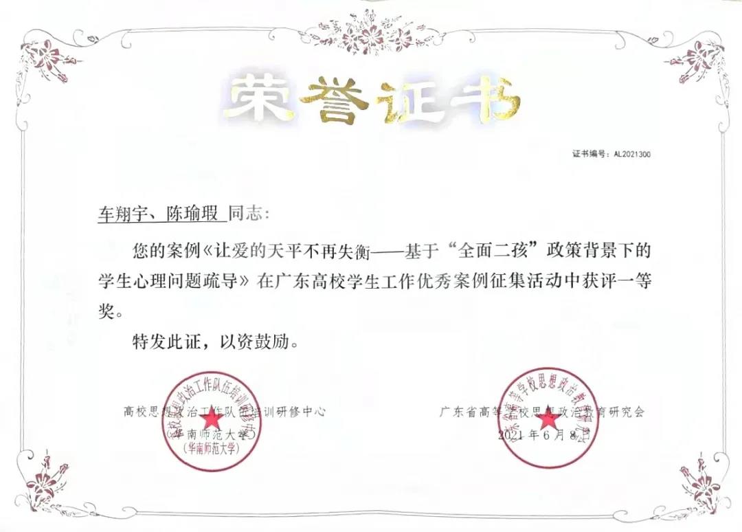两位老师在日常工作中关注到“全面二孩”政策的实施对自主意识较强的“00后”大学生所造成的心理影响,于是聚焦于这一群体,撰写了《让爱的天平不再失衡——基于“全面二孩”政策背景下的学生心理问题疏导》这一工作案例。通过原因分析,对策寻找,从谈心谈话、家校联动、朋辈互助方面帮助学生与家中父母以及新生的“二宝”更好相处,从“缺爱”的不平衡心理中走出来。