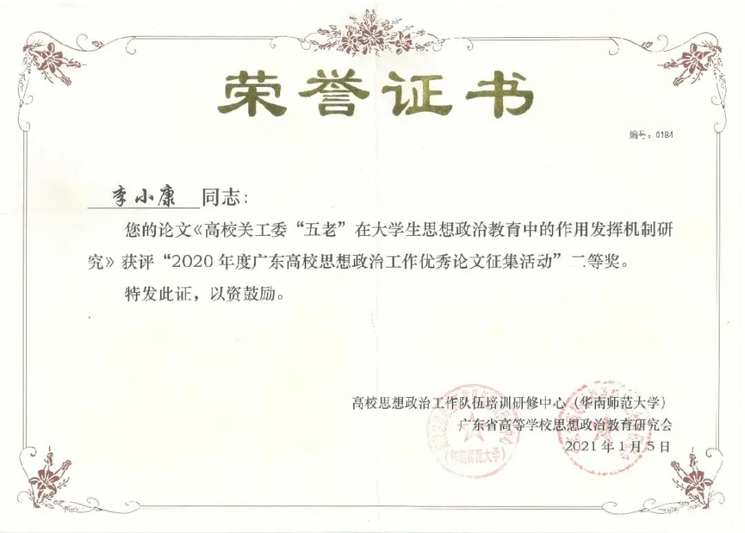 该论文指出,高校广大“五老”(老干部、老战士、老专家、老教师、老模范)具有过硬的政治素养和良好的专业素质,是大学生思想政治教育中的宝贵资源,要将高校关工委“五老”作用发挥与大学生思想政治教育模式相结合,配合设计“五老”在大学生思想政治教育工作中发挥作用的良性机制,才能更好地发挥高校关工委“五老”的政治优势、威望优势、经验优势、时空优势和亲情等优势,同时解决当前大学生思想政治教育力度不够的现实问题。