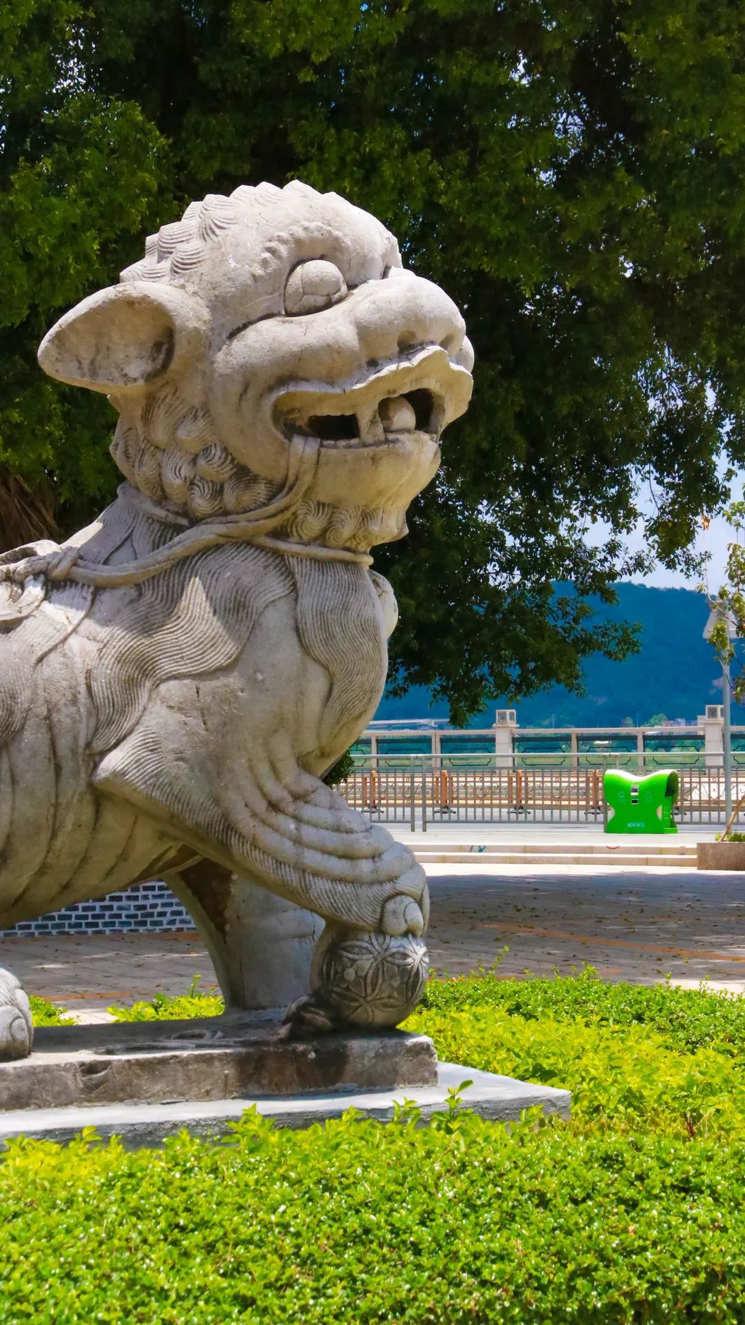阅江楼高两层,分东西南北四座,以回廊小阁相互衔接成四合院,中间设水池假山为点缀,尽显岭南庭院匀称之美。南门石阶两侧的石狮庄严威武,是肇庆市现存石雕中的珍品。