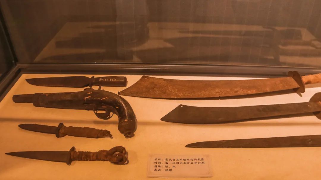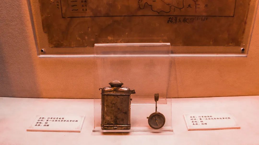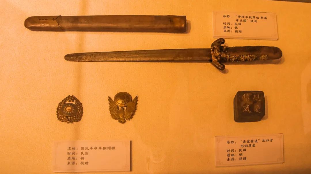 展示区内还摆放了与历史相关的物品、铜像,国民革命时期的铁剑、手枪、歌谱,肇庆市革命烈士使用过的印章、指南针等等,每一件物品都无声传递着它曾亲历的红色记忆。
