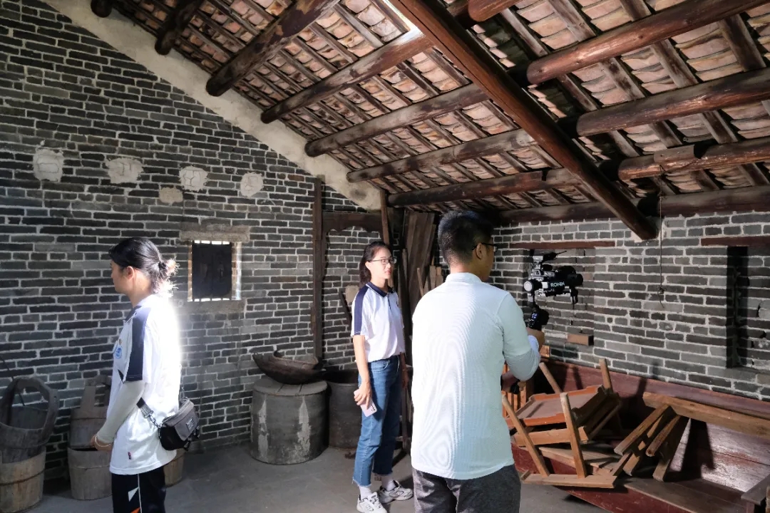 故居的二楼储物处,一缕光穿过瓦间,照亮一根细细的麻绳。为了最好的录制效果,实践队员以身做挡光板,只为了捕捉这一刻的感动。