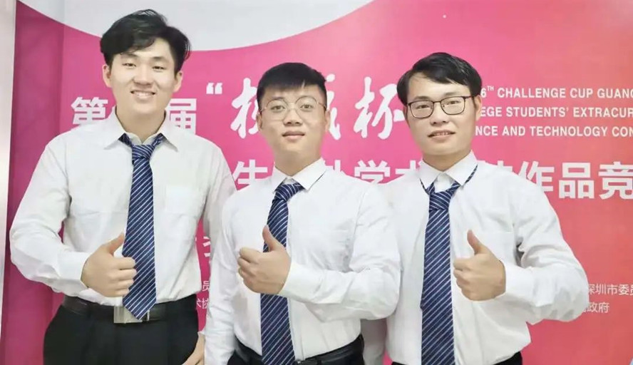 论文的撰写也是一个难点。由于需要翻阅大量中外文献,翁奕涛和伙伴们耐心搜索一个个关键词,认真提取一条条有用信息,一点点搭起文章的框架结构。不知道多少次,大家为了新出现的问题焦头烂额,工作到深夜后沿着静寂的校道返回宿舍,还要继续熬夜通宵改说明书……功夫不负有心人,翁奕涛和团队成员成功发表2篇学术论文、申请6项国家发明专利,最终把省赛一等奖牢牢握在手中。