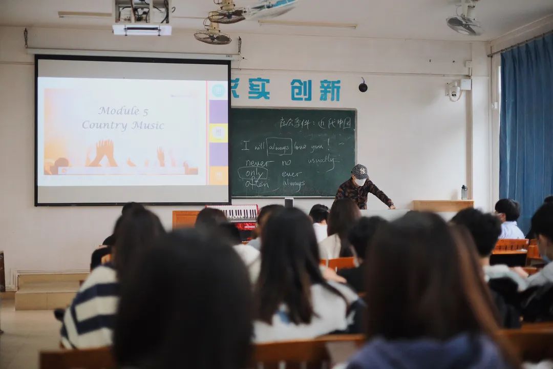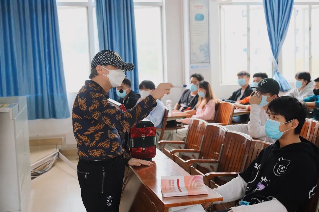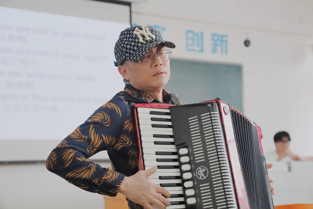 最近,有许多师生、校友经常能在抖音上刷到一些这样的短视频:一位老师抱着手风琴,在课堂上动情地与学生合唱着耳熟能详的歌曲,课堂气氛轻松而有趣。