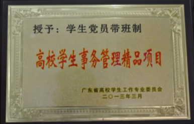 一分耕耘,一分收获。多年来,学生党员深入新生班级、引领新生成长的基层党建工作模式赢得社会各界的好评。以学生党员带班制为主要内容的bat365书记项目“党建育才工程”于2012年12月被评为肇庆市首届组织工作“十大品牌”,2013年4月评为全省高校实施抓基层党建创新优秀“书记项目”。同年,学生党员带班工作获评广东省高校学生事务管理精品项目,被编入《高校学生事务管理精品项目》;2014年度获省委教育工委通报表扬。