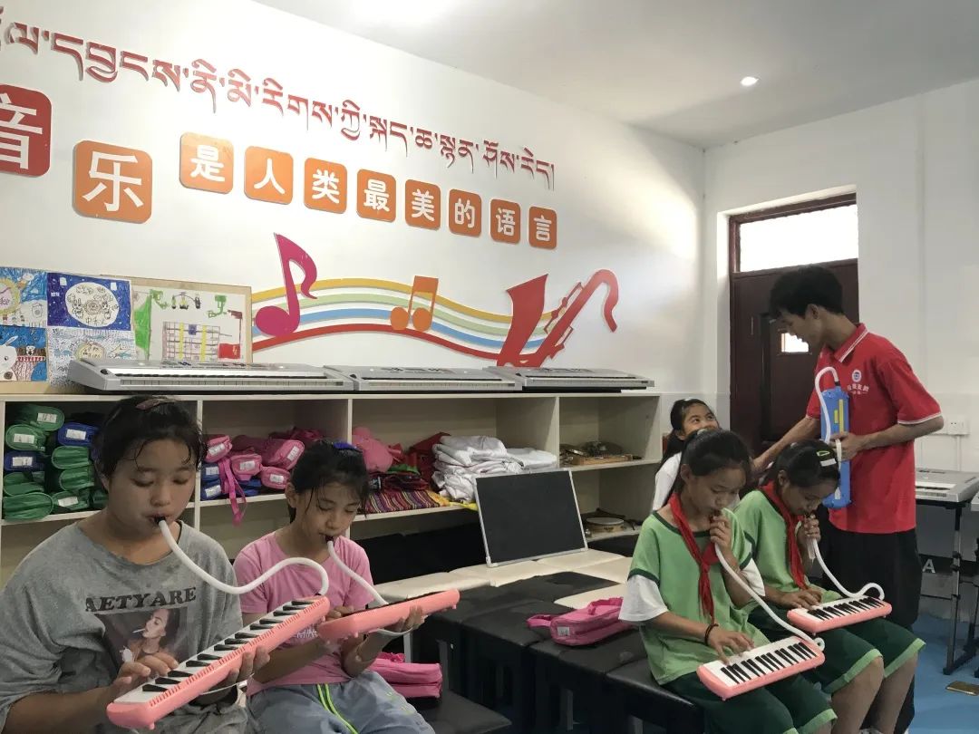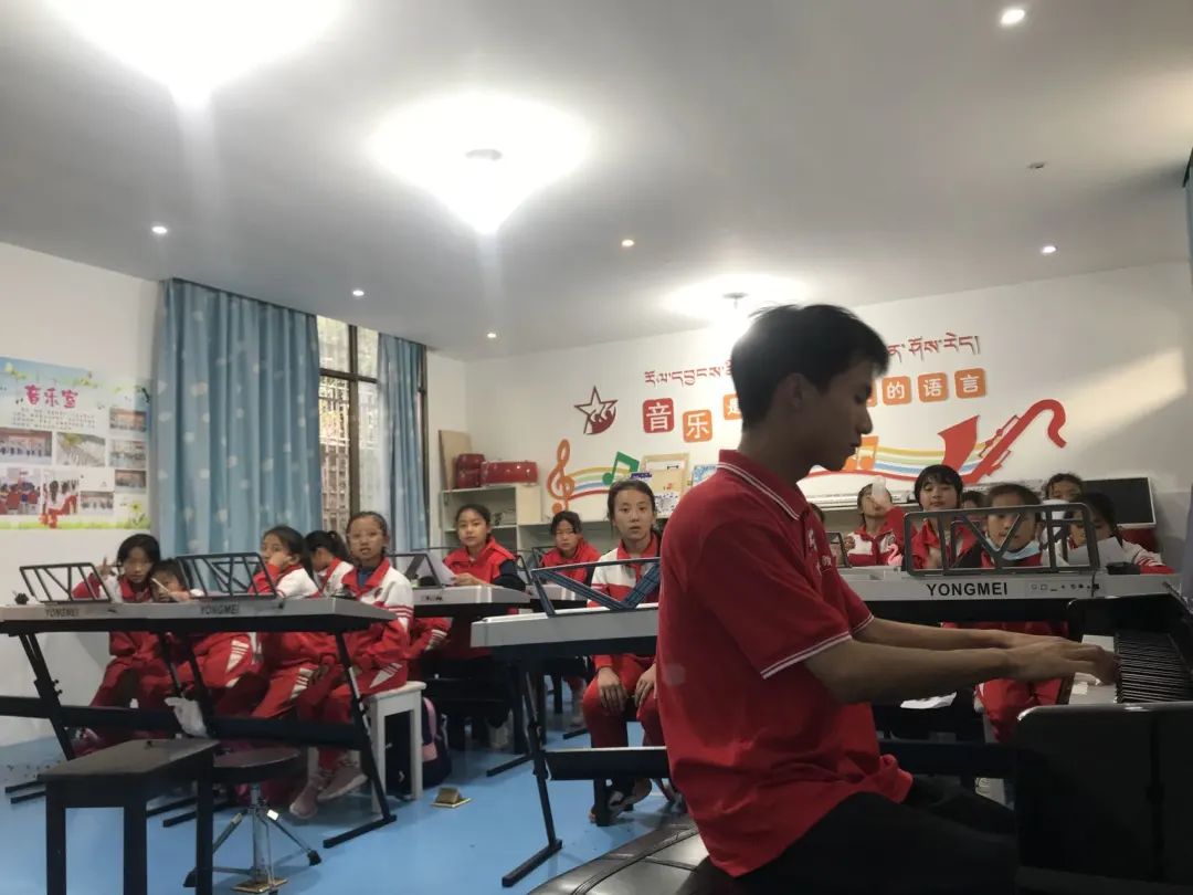 在援藏支教中,我担任了一至五年级的音乐老师、三年级英语老师、安全专干助理,也继承了往批支教队员的合唱班以及口风琴班,也创建了鼓号队。