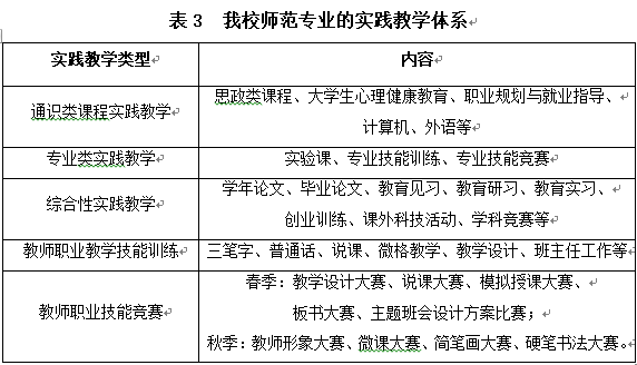 bat365把“综合素质高、实践能力强、学科基础扎实、符合基础教育需要”作为师范专业人才的培养目标,以提升学生综合素质和实践能力为核心,将课程教学与技能竞赛活动相互融合、相互渗透,由此建立有利于师范生实践技能提升的技能竞赛体系,并在此基础上构建有利于大学生实践能力和创新能力培养的通识教育、学科基础、专业教育、双创教育相互衔接、课内与课外、校内与校外相互联动的多元化实践教学体系。