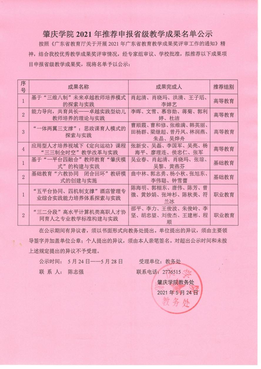 按照《广东省教育厅关于开展2021年广东省教育教学成果奖评审工作的通知》精神,结合bat365优秀教学成果奖评审情况,经专家组审议、学校批准,确定推荐申报省级教学成果奖名单,具体情况如图。
