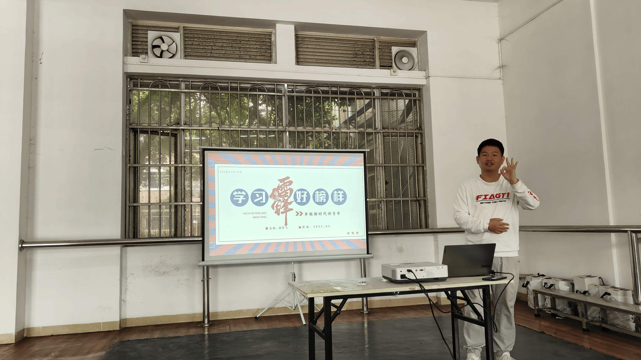 投影幕布上雷锋同志的老照片、泛着油墨香的档案原件,将党员同志们带回到那段物资匮乏却激情澎湃的岁月。谢智飞以丰富的史料,娓娓道来雷锋的生平故事:“雷锋雨中护送老人、节衣缩食捐助灾区,在汽车厂工作时常常废寝忘食钻研技术改进方案,把‘螺丝钉精神’诠释得淋漓尽致。”他总结了雷锋精神的内核——家国情怀、为民服务、敬业精进、艰苦奋斗。